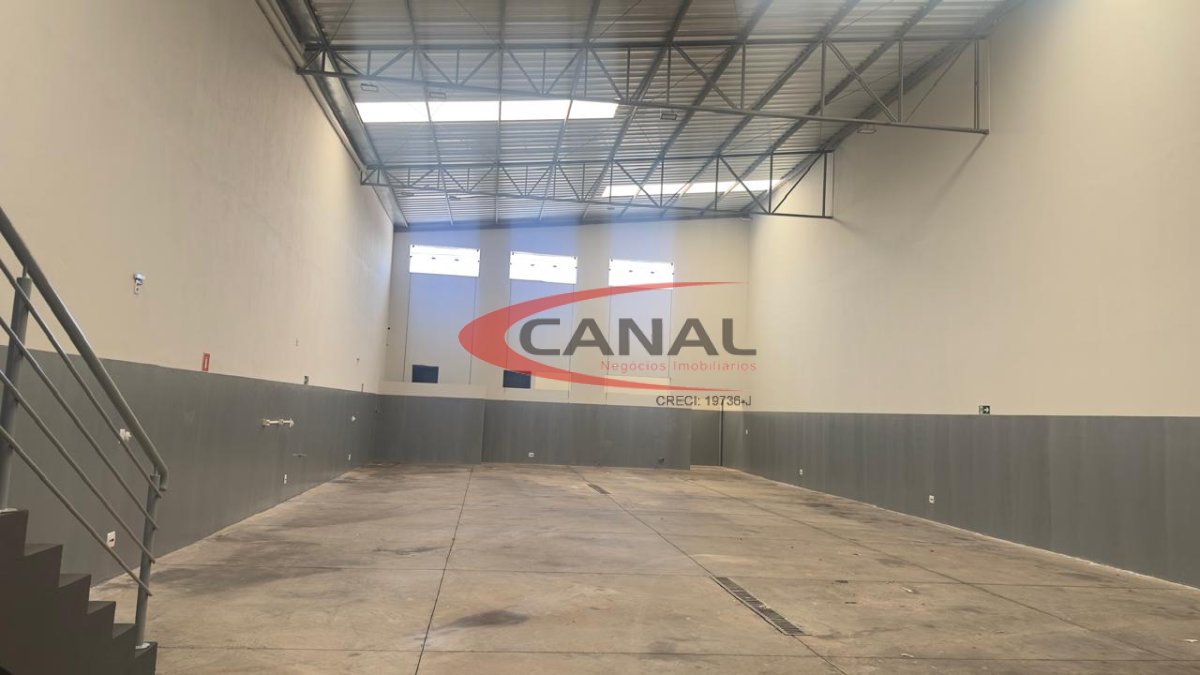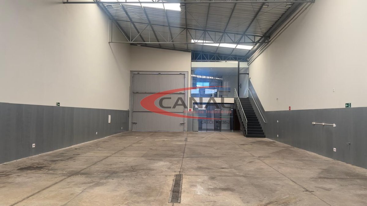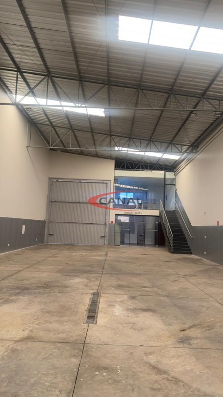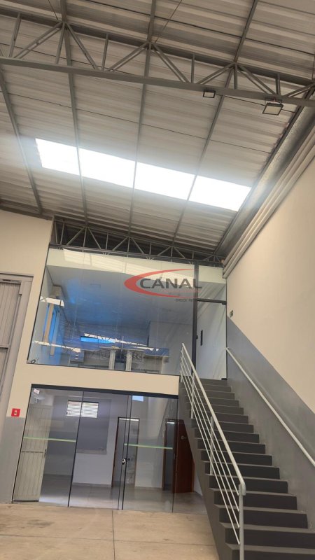 O barracão tem 1 cozinha, banheiros para funcionários, um mezanino com a sala ampla e com 2 banheiro com ar-condicionado, bem seguro com pé direito duplo.